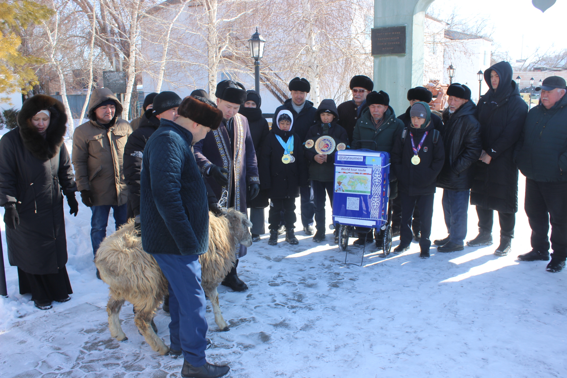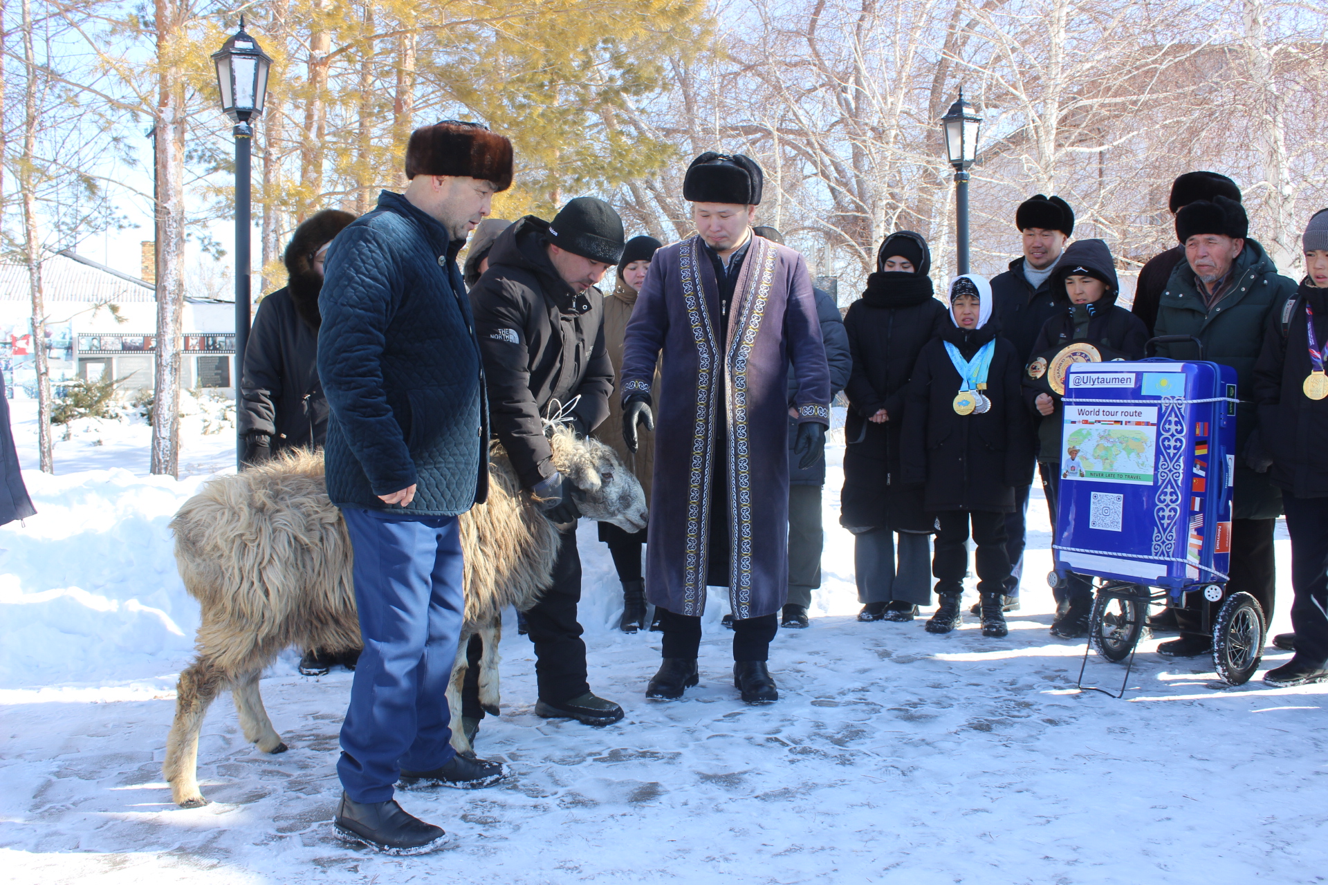 Жиһанкез, марафоншы Сәрсенбай Оспанұлын музей алаңында жиналған жұртшылық зор құрметпен қарсы алды. Қасиетті Ұлытауды барша қазақстандықтарға және шетелдіктерге танытқан азаматпен қауышу көпшілікке үлкен қуаныш сыйлады. Еуропаға аттанғалы тұрған жиһанкезге арнап құрбандық малы шалынып, кент имамы мен ақсақалдар ақ батасын берді.